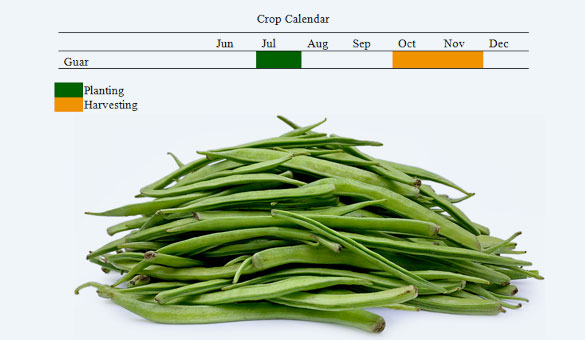 In India, the sowing season for guar seed is end of July and it is harvested during November. It is usually 90 days crop.